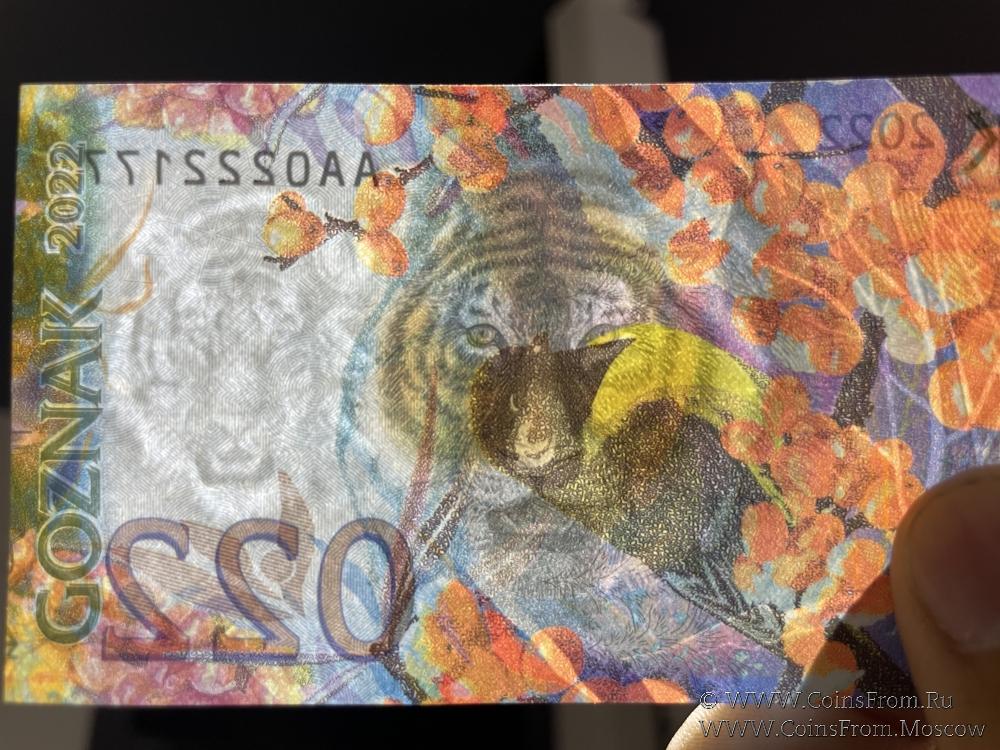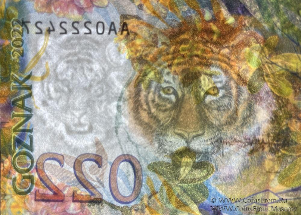Тестовые банкноты в буклете. ГОЗНАК 2022 г. Водяной знак - "тигр". Заготовки банкнот с новейшими техническими решениями печати и дизайна.