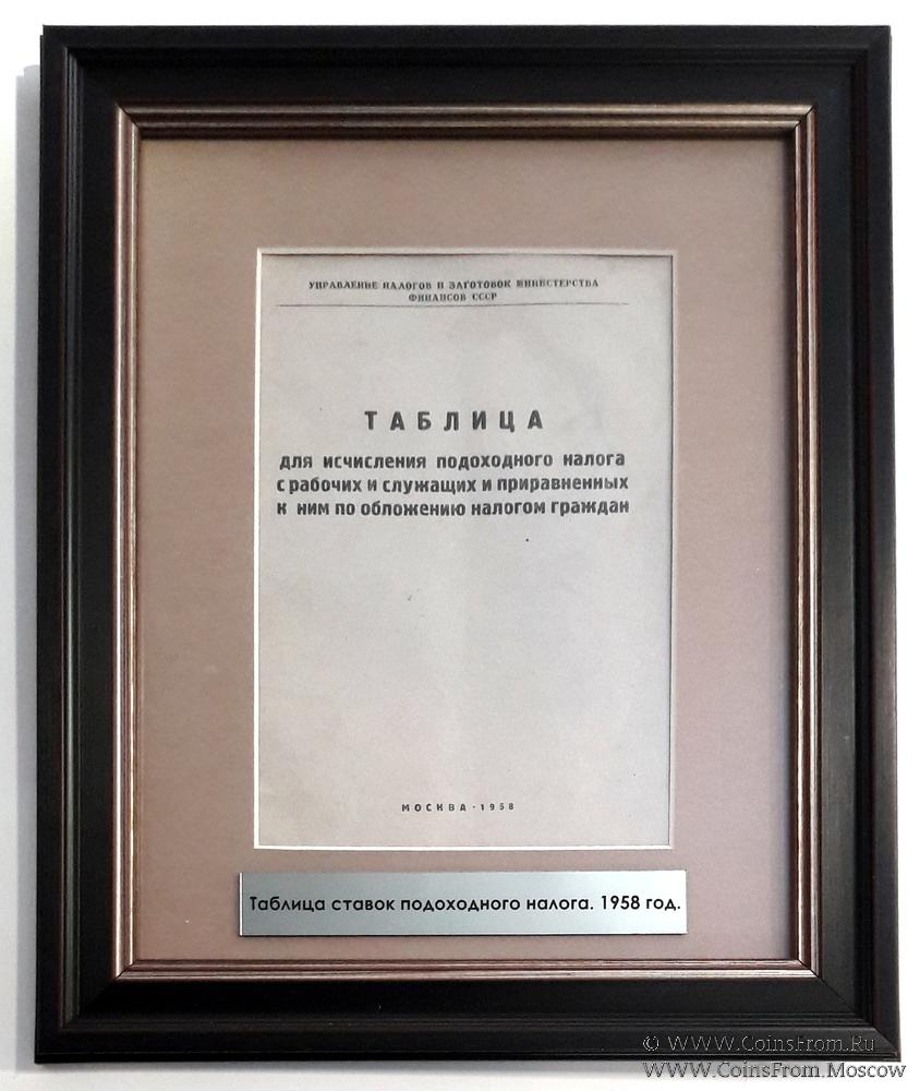 Управление налогов и заготовок Министерства финансов СССР. Москва. 1958 г. Типография им. Котлякова Госфиниздата СССР. Ленинград. Брошюра вынимается из рамки. Стекло антиблик.