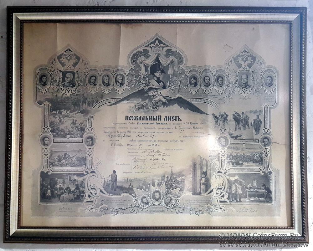 Похвальный лист украшен изображениями Императора, полководцев Отечественной Войны 1912 года и их изречениями.