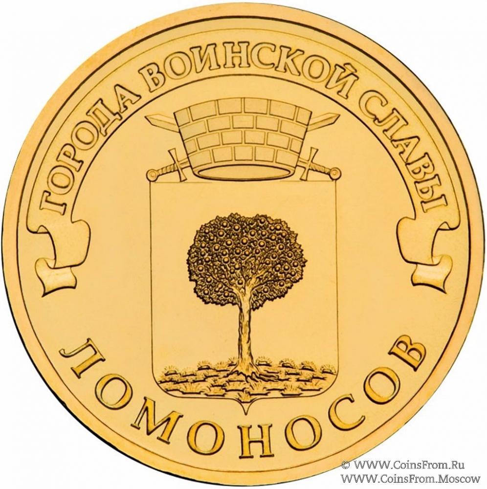 ГВС Ломоносов. Чеканка: Санкт-Петербургский монетный двор (СПМД). Оформление гурта: 6 участков по 5 рифов и 6 участков по 7 рифов, чередующихся 12 гладкими участками.