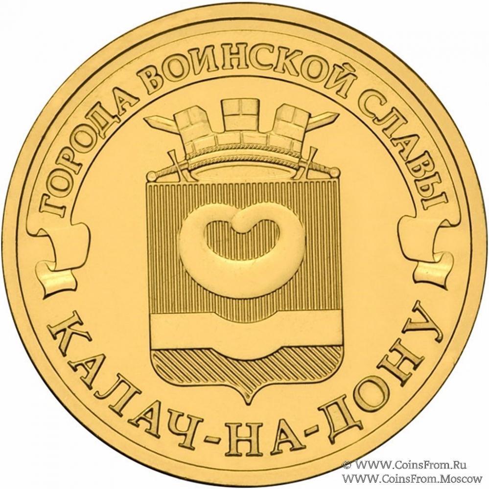ГВС Калач-на-Дону. Чеканка: Санкт-Петербургский монетный двор (СПМД). Оформление гурта: 6 участков по 5 рифов и 6 участков по 7 рифов, чередующихся 12 гладкими участками.