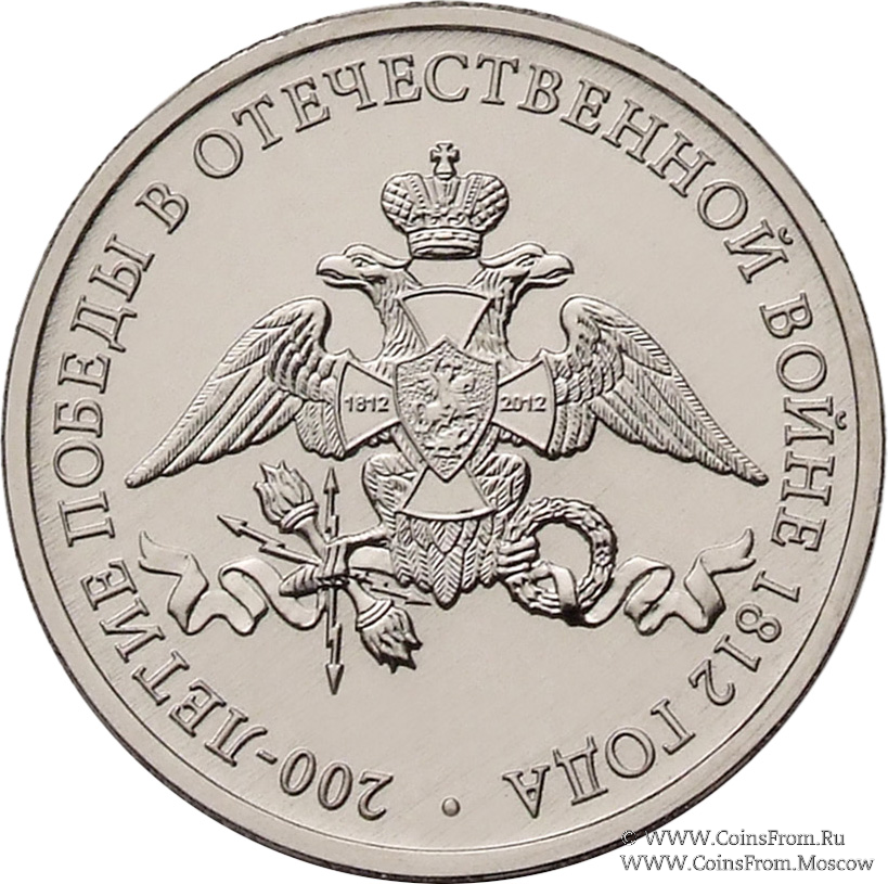 Эмблема празднования 200-летия победы России в Отечественной войне 1812 года. Чеканка: Московский монетный двор (ММД).