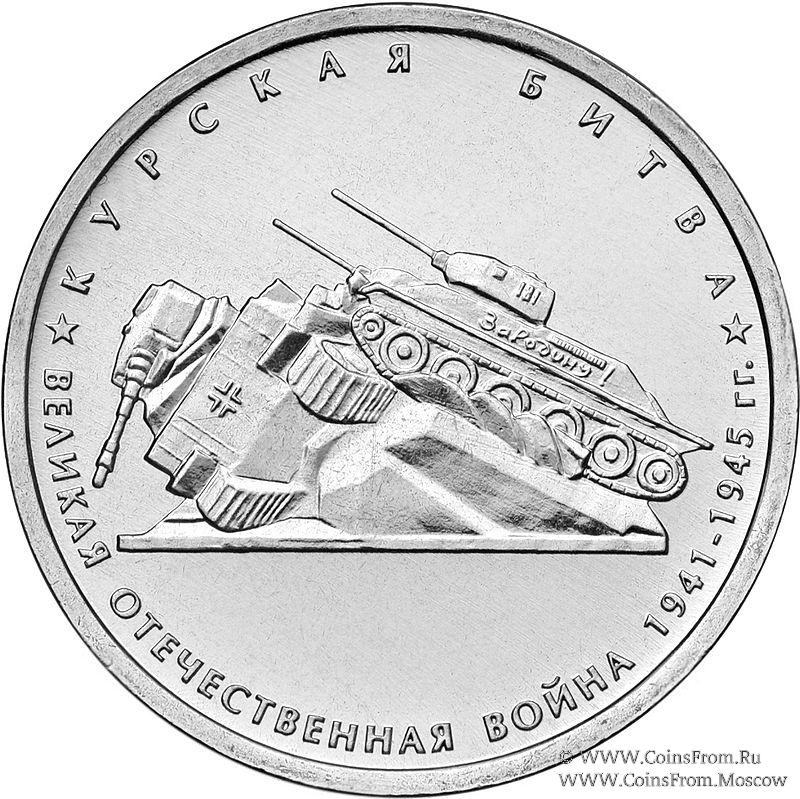 Курская битва. Чеканка: Московский монетный двор (ММД). Оформление гурта: 12 участков по 5 рифов.