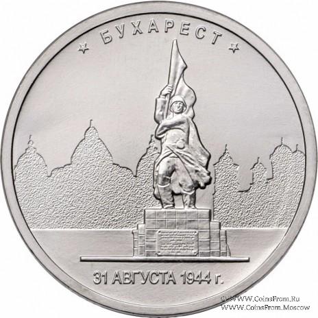 Бухарест. 31.08.1944 г. Чеканка: Московский монетный двор (ММД). Оформление гурта: 12 участков по 5 рифов каждый.