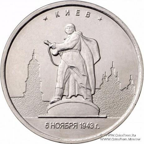 Киев. 6.11.1943 г. Чеканка: Московский монетный двор (ММД). Оформление гурта: 12 участков по 5 рифов каждый.