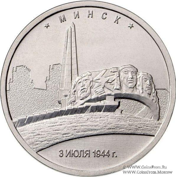Минск. 3.07.1944 г. Чеканка: Московский монетный двор (ММД). Оформление гурта: 12 участков по 5 рифов каждый.