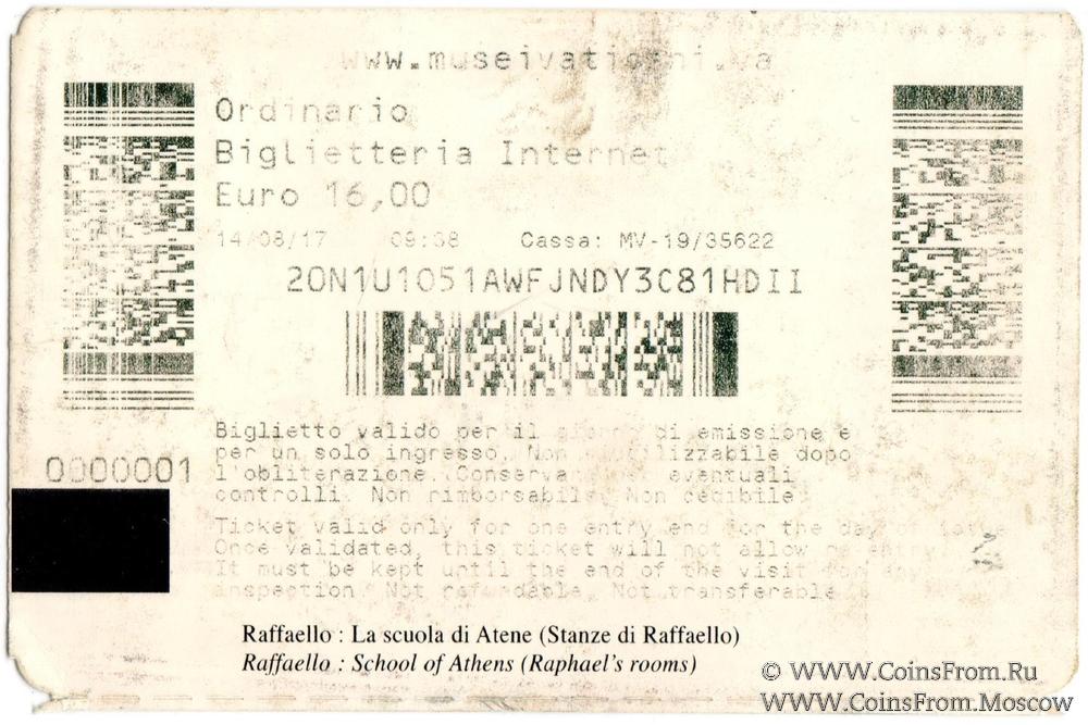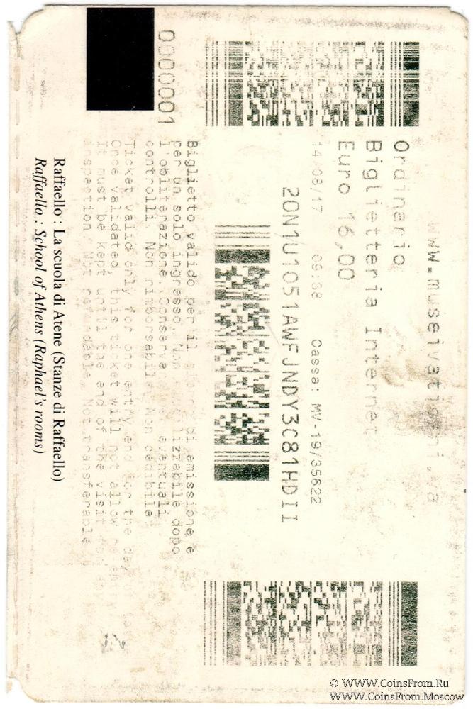 Билет 2017 г. (Музей Ватикана)