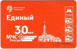 Билет "Единый". Размер: 85,5 * 54 мм. Выпуск билета посвящён 30-летию МЧС России.