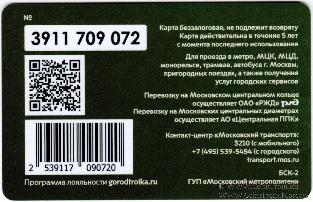 Карта беззалоговая для проезда в метро, МЦК, монорельсе, трамвае, автобусе, троллейбусе г. Москвы, пригородных электропоездах, а также городских сервисов.