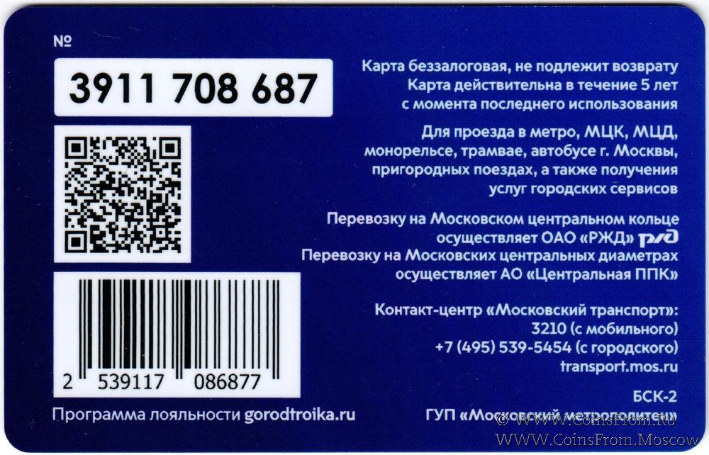 Карта беззалоговая для проезда в метро, МЦК, монорельсе, трамвае, автобусе, троллейбусе г. Москвы, пригородных электропоездах, а также городских сервисов.