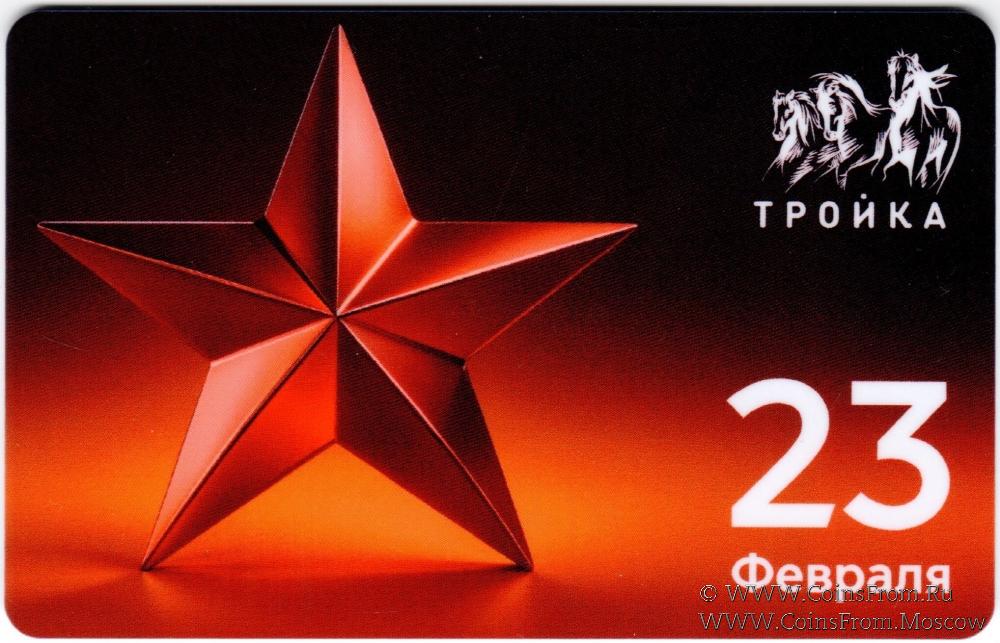 Электронная транспортная карта "Тройка". Размер: 85,5 * 54 мм. Серия из двух карт "Тройка" с поздравлением с Днём защитника Отечества, который ежегодно отмечается 23 февраля. Вариант 1 (звезда).