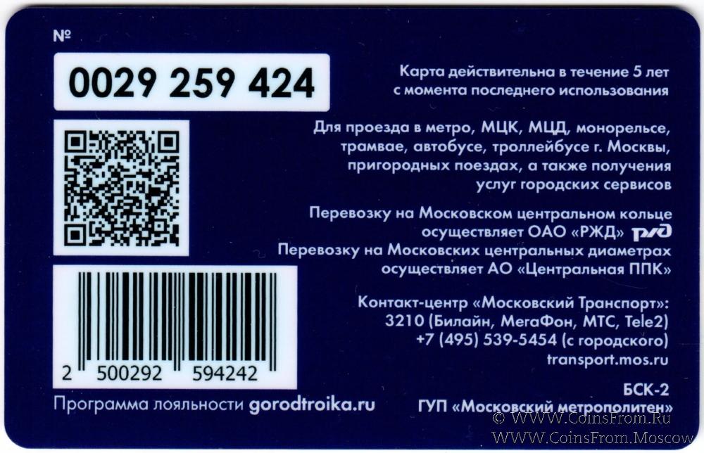 Карта залоговая (0029) действительна в течение 5 лет с момента последнего использования. Для проезда в метро, МЦК, МЦД, монорельсе, трамвае, автобусе, троллейбусе г. Москвы, пригородных поездах, а также получения услуг городских сервисов.