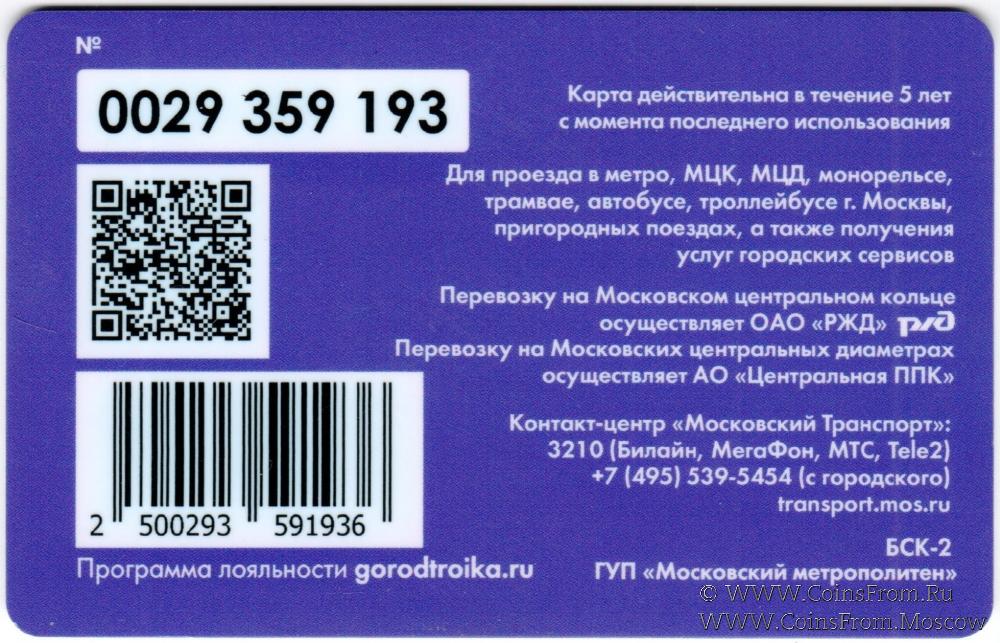 Карта залоговая (0029) действительна в течение 5 лет с момента последнего использования. Для проезда в метро, МЦК, МЦД, монорельсе, трамвае, автобусе, троллейбусе г. Москвы, пригородных поездах, а также получения услуг городских сервисов.