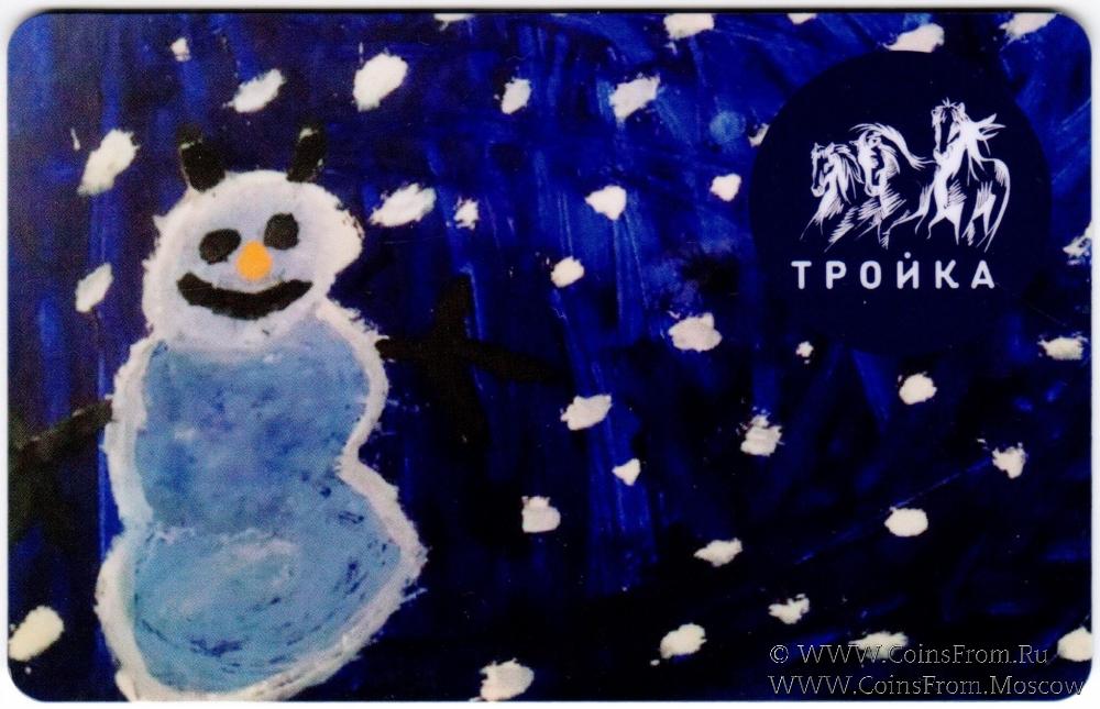 Электронная транспортная карта "Тройка". Размер: 85,5 * 54 мм. Карта "Тройка" из серии "Детские рисунки", состоящей из 13 разновидностей. Каждый вид реализовывался на отдельной линии в кассах станций метро и автоматах по продаже билетов. Вариант 7.1 (реализация на Кольцевой линии).