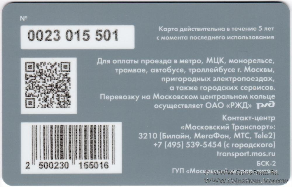Карта залоговая (0023), действительна в течение 5 лет с момента последнего использования. Для оплаты проезда в метро, МЦК, монорельсе, трамвае, автобусе, троллейбусе г. Москвы, пригородных электропоездах, а также городских сервисов.