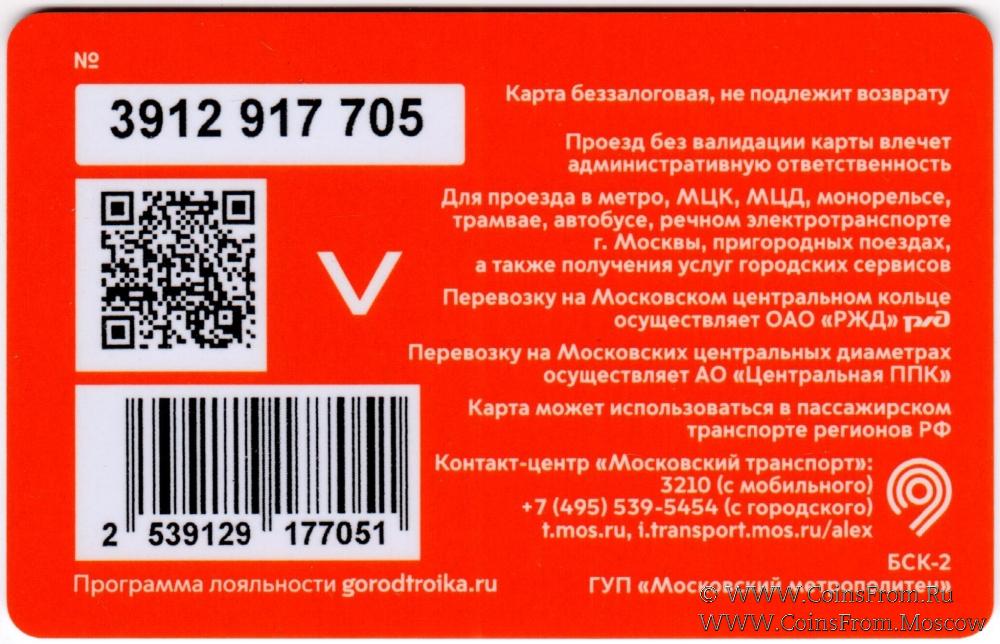 Карта беззалоговая (3912), не подлежит возврату. Проезд без валидации карты влечет административную ответственность. Для проезда в метро, МЦК, МЦД, монорельсе, трамвае, автобусе, речном электротранспорте г. Москвы, пригородных поездах, а также получения услуг городских сервисов.