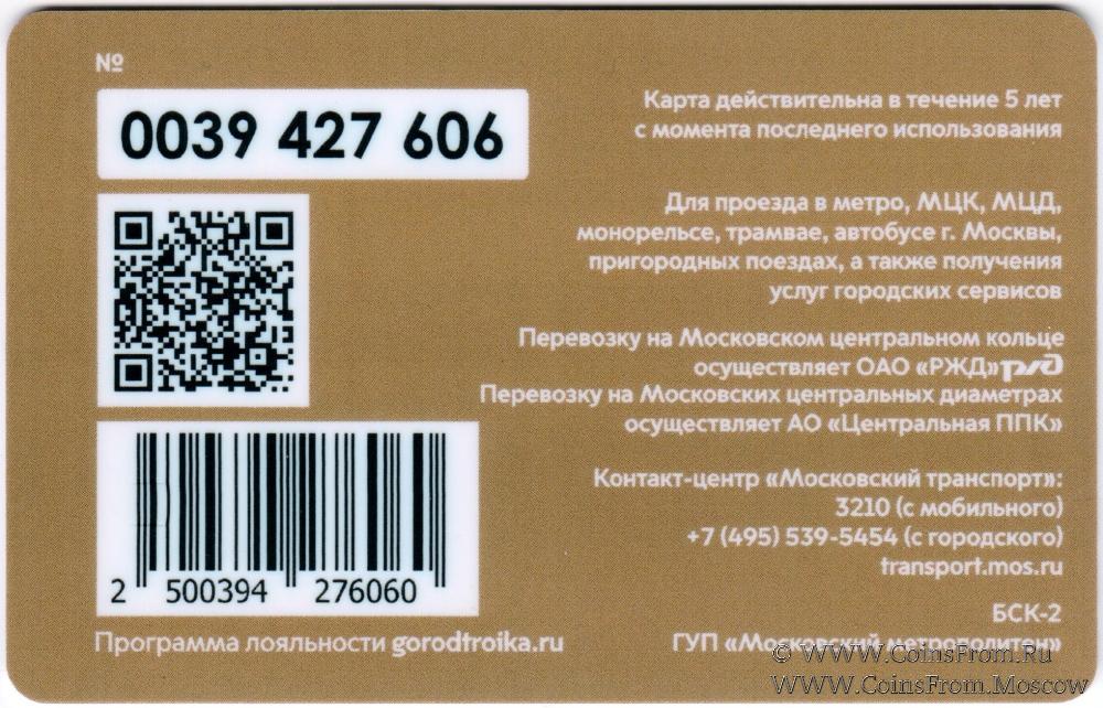 Карта залоговая (0039), действительна в течение 5 лет с момента последнего использования. Карта действительна в течение 5 лет с момента последнего использования. Для проезда в метро, МЦК, МЦД, монорельсе, трамвае, автобусе г. Москвы, пригородных поездах, а также получения услуг городских сервисов.