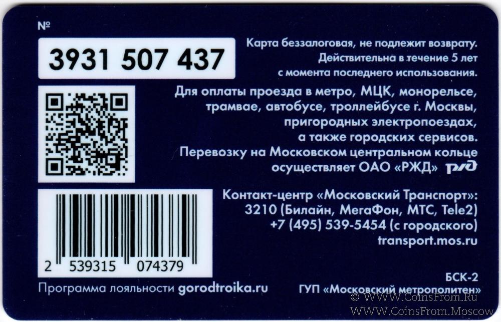 Карта подарочная (3931) беззалоговая, не подлежит возврату. Для оплаты проезда в метро, МЦК, монорельсе, трамвае, автобусе, троллейбусе г. Москвы, пригородных электропоездах, а также городских сервисов.