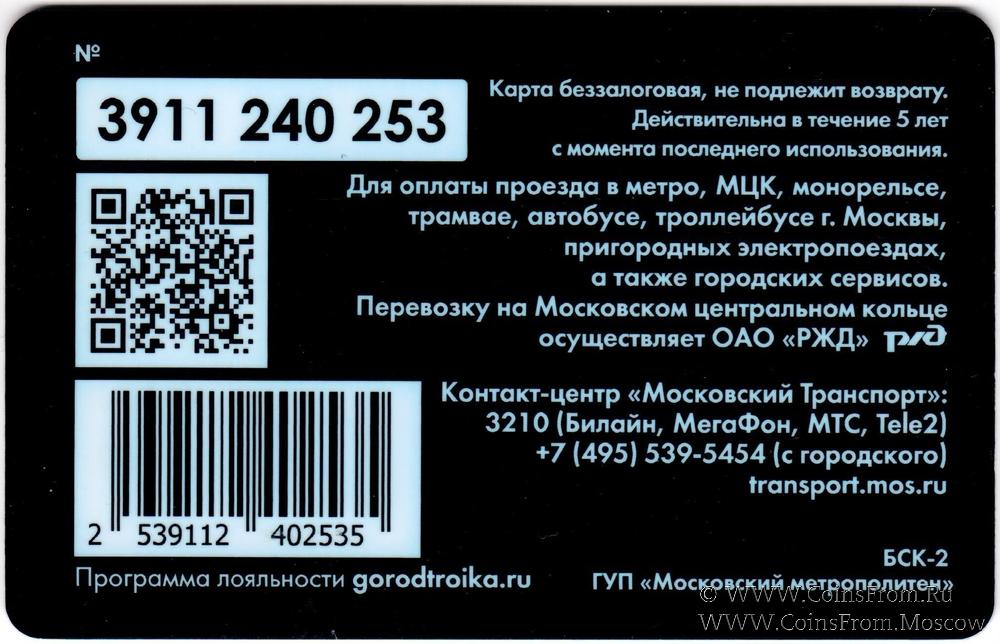 Карта беззалоговая подарочная для проезда в метро, МЦК, монорельсе, трамвае, автобусе, троллейбусе г. Москвы, пригородных электропоездах, а также городских сервисов.