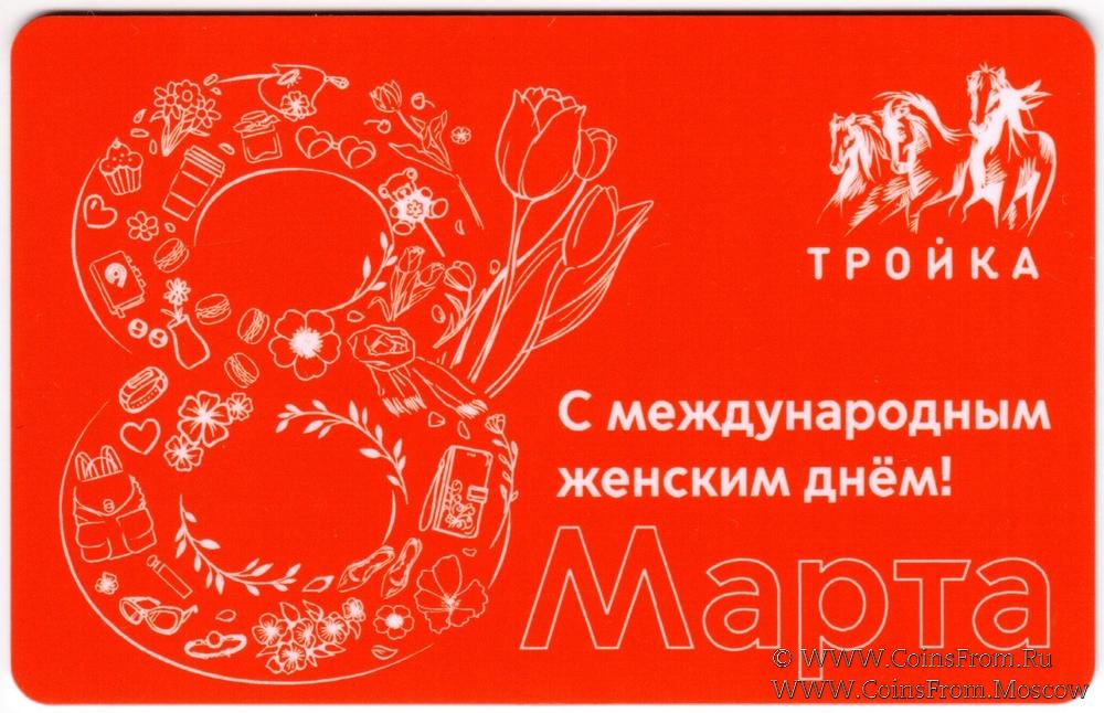 На аверсе дизайн: 8 марта: "С международным женским днем!".