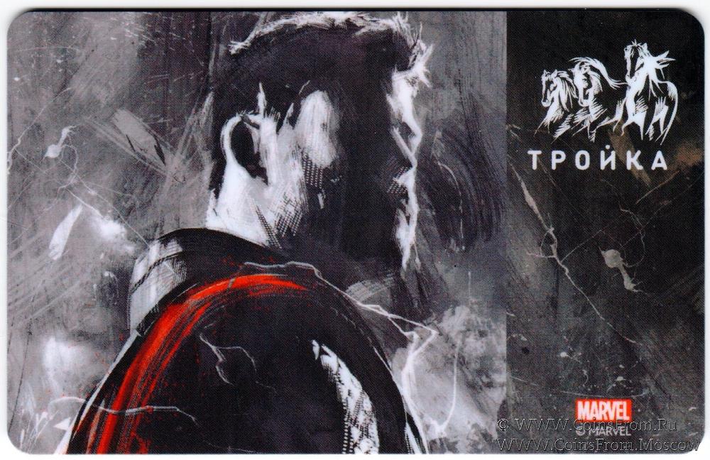 Электронная транспортная карта "Тройка". Размер: 85,5 * 54 мм. Дизайн карт с изображением супергероев (Тор) фильма "Мстители. Финал" кинокомпании "MARVEL Studios".