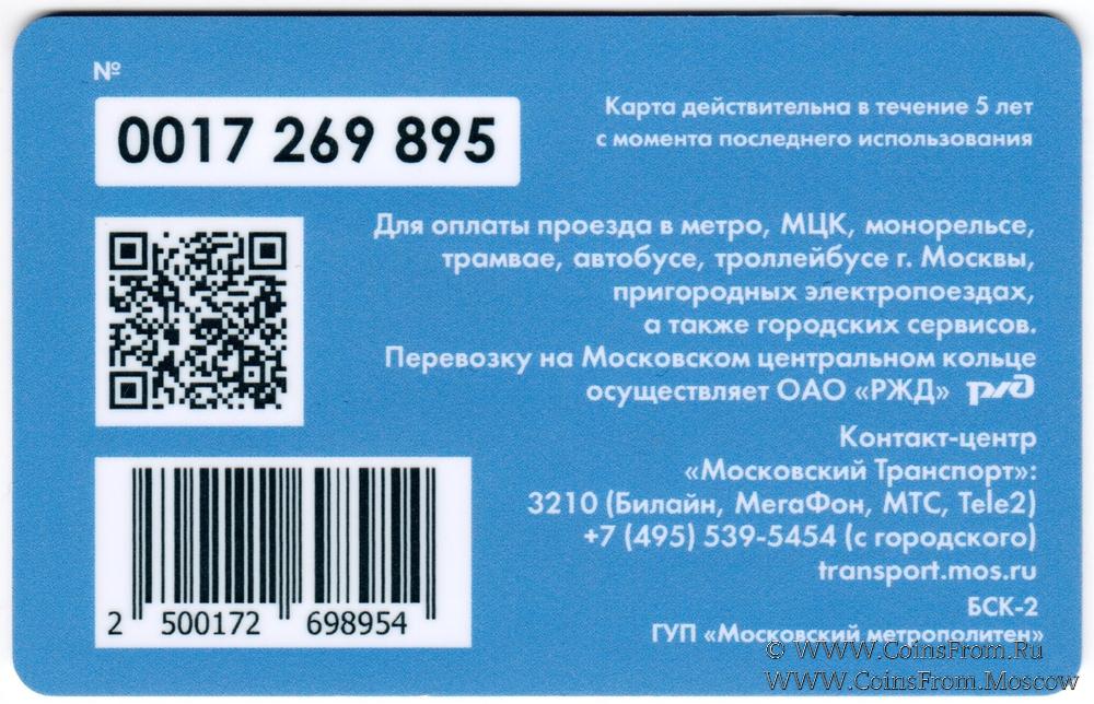 Карта залоговая для проезда в метро, МЦК, монорельсе, трамвае, автобусе, троллейбусе г. Москвы, пригородных электропоездах, а также городских сервисов.