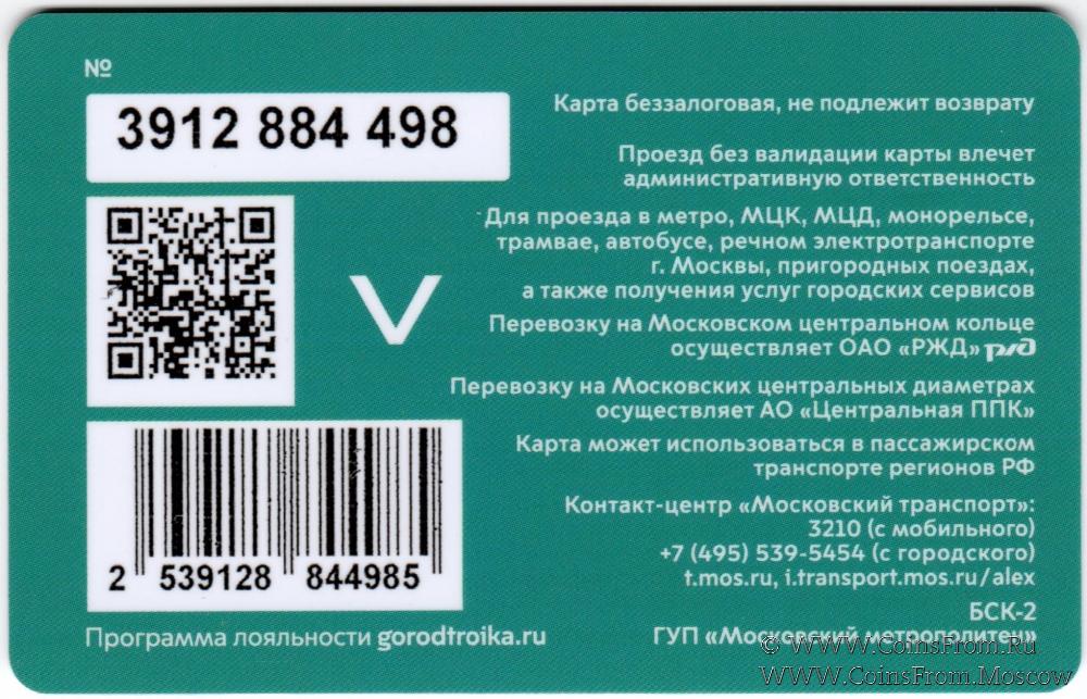 Карта беззалоговая (3912), не подлежит возврату. Проезд без валидации карты влечет административную ответственность. Для проезда в метро, МЦК, МЦД, монорельсе, трамвае, автобусе, речном электротранспорте г. Москвы, пригородных поездах, а также получения услуг городских сервисов.