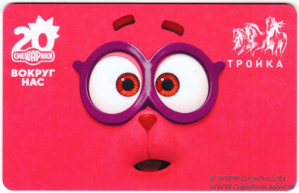 Электронная транспортная карта "Тройка". Размер: 85,5 * 54 мм. Карта "Тройка" с изображениями персонажей из мультсериала "Смешарики" (Ёжик), посвященные 20-летию создания, приурочены ко Дню защиты детей (1 июня).