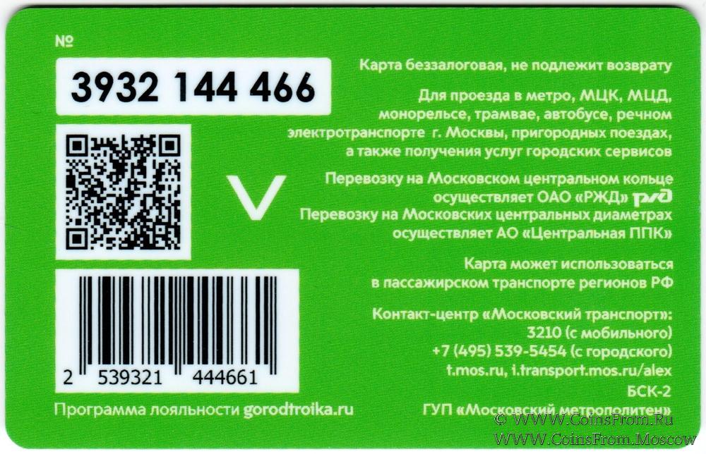 Карта беззалоговая, не подлежит возврату. Для проезда в метро, МЦК, МЦД, монорельсе, трамвае, автобусе г. Москвы, пригородных поездах, а также получения услуг городских сервисов.