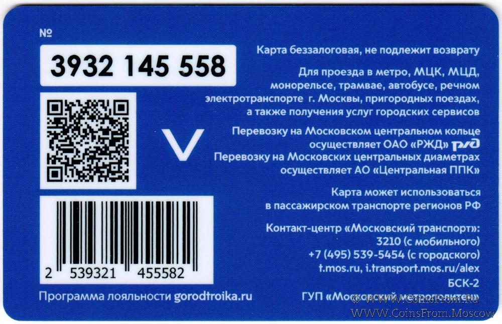 Карта беззалоговая, не подлежит возврату. Для проезда в метро, МЦК, МЦД, монорельсе, трамвае, автобусе г. Москвы, пригородных поездах, а также получения услуг городских сервисов.