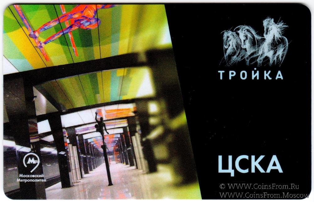 Электронная транспортная карта "Тройка". Размер: 85,5 * 54 мм. На аверсе: дизайн Станция метро "ЦСКА". Станция БКЛ открыта 26 февраля 2018 г.