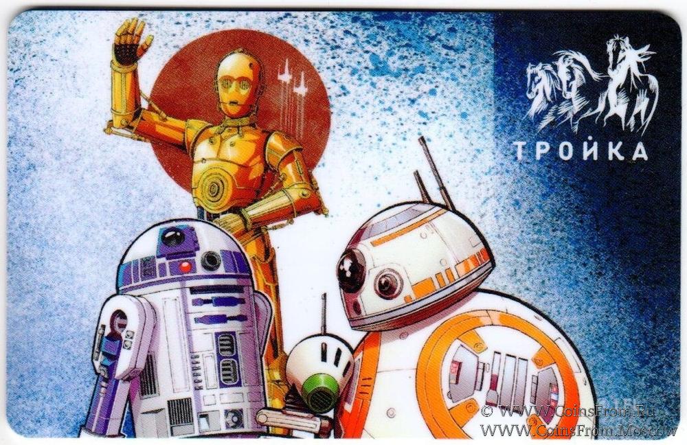 На аверсе: дизайн StarWars (роботы R2-D2; C-3PO, BB-8).