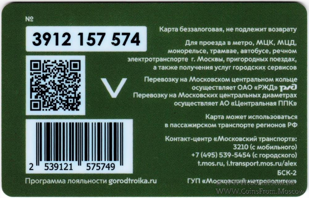 Карта сувенирная (3912) беззалоговая, не подлежит возврату. Для проезда в метро, МЦК, МЦД, трамвае, автобусе, речном электротранспорте г. Москвы, пригородных поездах, а также получения услуг городских сервисов.