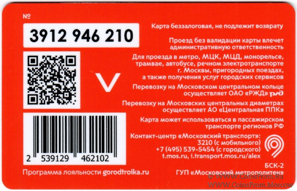 Карта беззалоговая (3912), не подлежит возврату. Проезд без валидации карты влечет административную ответственность. Для проезда в метро, МЦК, МЦД, монорельсе, трамвае, автобусе, речном электротранспорте г. Москвы, пригородных поездах, а также получения услуг городских сервисов.