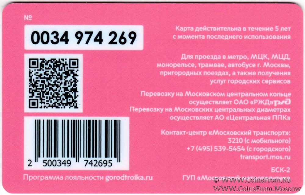 Карта залоговая (0034), действительна в течение 5 лет с момента последнего использования. Для проезда в метро, МЦК, МЦД, монорельсе, трамвае, автобусе г. Москвы, пригородных поездах, а также получения услуг городских сервисов.